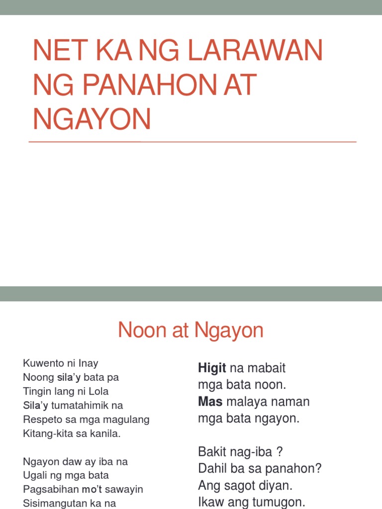 Learn vocabulary terms and more with flashcards games and other study tools. Lantay kung ang tuon ng paglalarawan ay nakapokus sa iisang bagay lamang. O Pahambing na magkatulad o Pahambing na di-magkatulad 4.