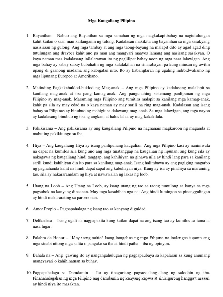 Nakikita pa ba ito ngayon. Sila din ay mahilig maniwala sa mga pamahiin. 11 na mabuting asal at kaugalian ng mga Pilipino na dapat ituro sa mga anak.
