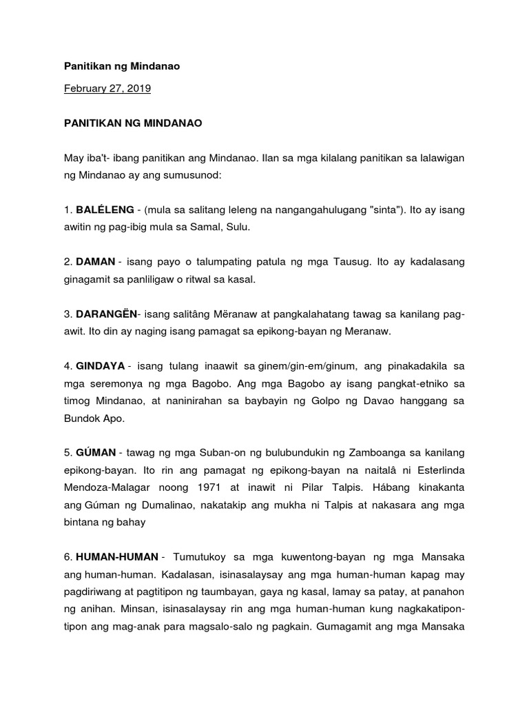 Full PDF Package Download Full PDF Package. Magbigay ng limang panitikan sa Mindanao. Mga Panitikan ng Mindanao.